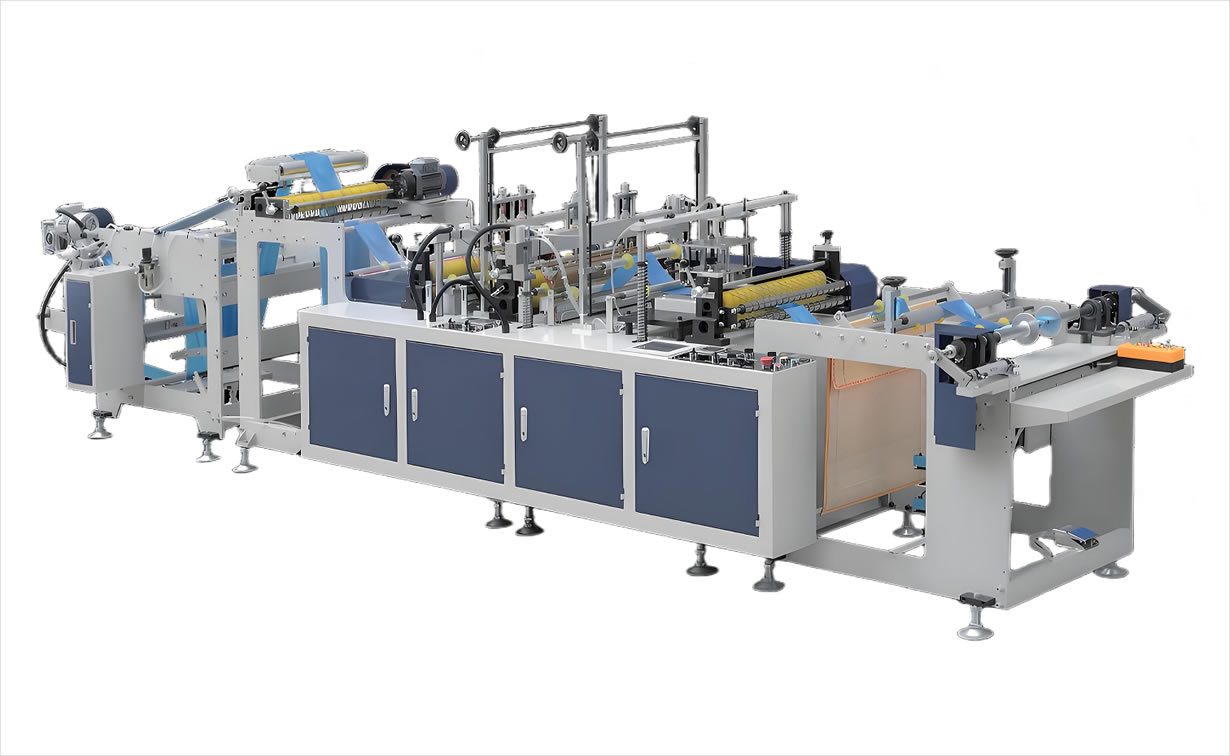 This equipment is a specialized device for producing eight fold flat mouth garbage bags. It has dual channel high-speed non stretch bag making, bottom sealing, independent automatic roll changing, neat winding, and accurate quantity. Proactively release materials and maintain stable tension.