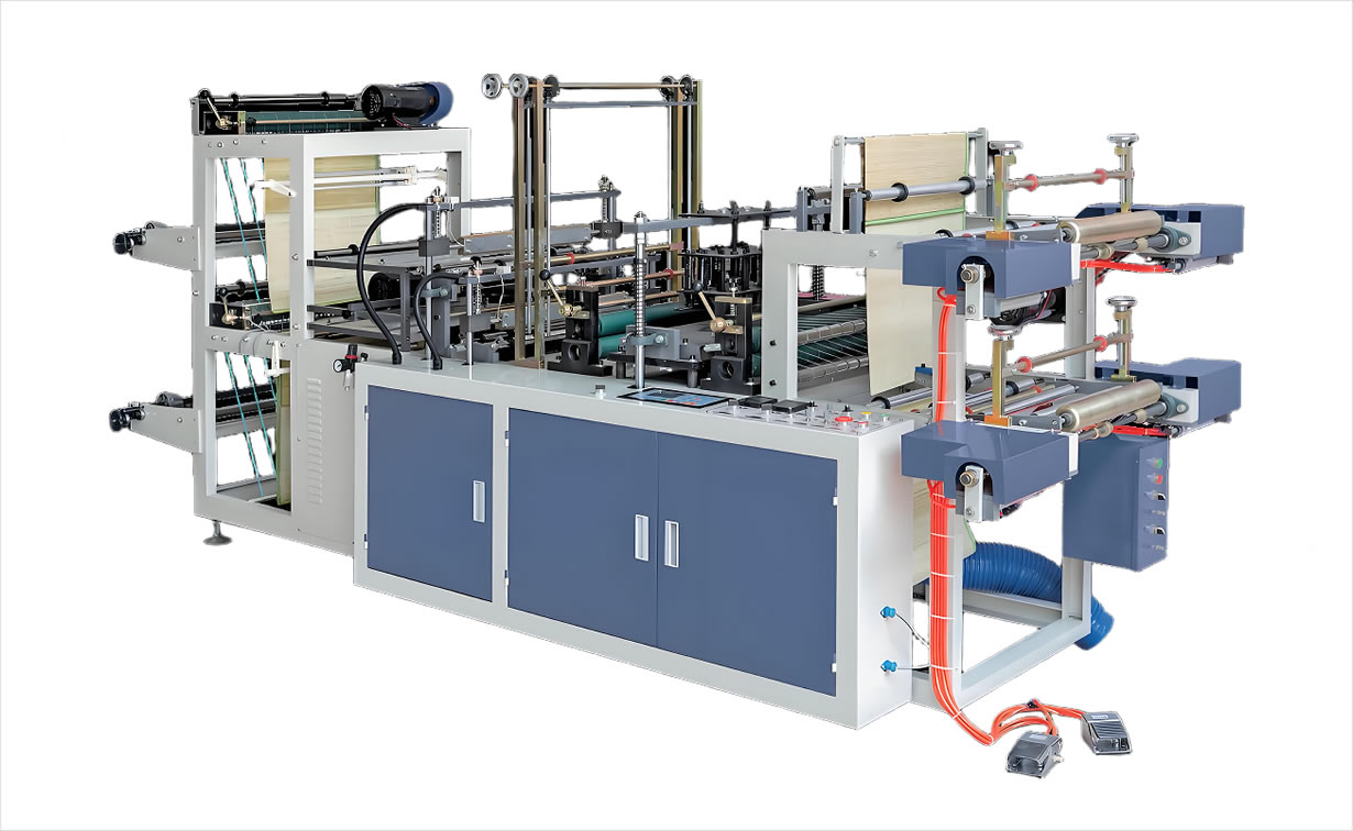 500型连卷制袋机适合生产HDPE/LDPE平口袋、背心袋.