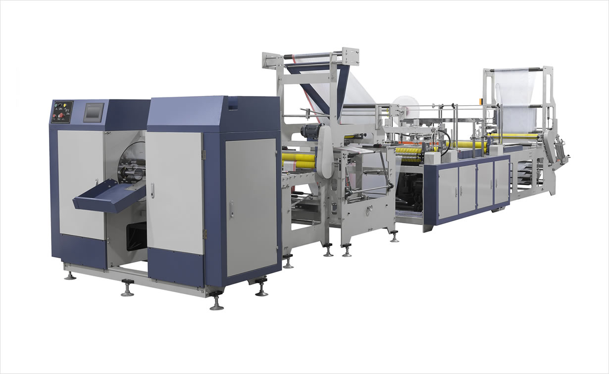 此设备为生产连卷穿绳袋专用设备,采用双伺服电机控制送料,制袋速度快,调节简单。无拉伸烫缝使袋子更牢固,自动换卷可以节省人工,大大提高效率。