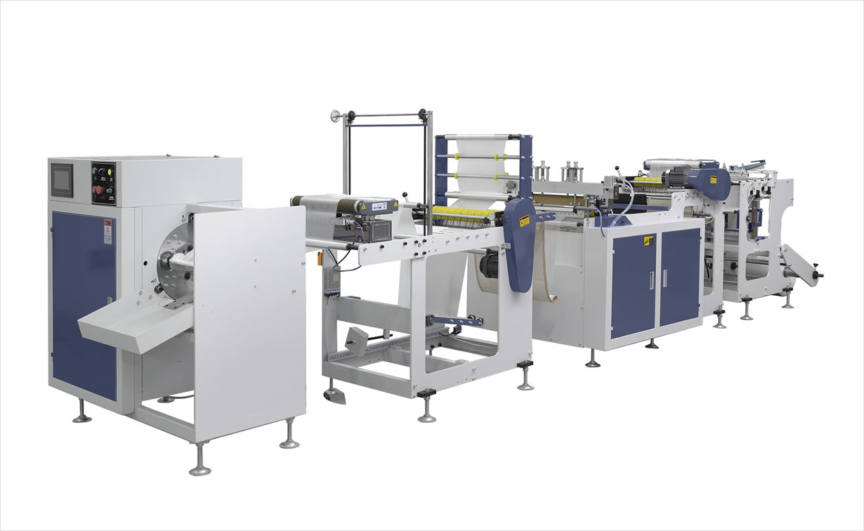 This equipment is a specialized device for producing eight fold flat mouth garbage suction bags. It has dual channel high-speed non stretch bag making, bottom sealing, independent automatic roll changing, neat winding, and accurate quantity. Proactively release materials and maintain stable tension.